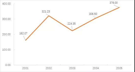 自此中国会展市场逐步放开,对外开放步伐加快。2001年上海市国际展览总面积为162.07万平方米,到2002年增长至321.23万平方米,增长率超98%。2002年北京市国际展览数量较2001年增长39.8%。
