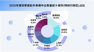 今年第四季度,TOP10城市(特别行政区)分别是香港特区(1221家)、深圳市(1129家)、上海市(886家)、宁波市(834家)、广州市(815家)、杭州市(514)、东莞市(514)、北京市(469家)、佛山市(452家)、温州市(405家)。分析可见,在29321家有效样本企业中,这些城市及香港特别行政区的占比情况如下:香港特区占比16.9%、深圳占比15.6%、上海占比12.2%、宁波占比11.5%、广州占比11.3%、杭州占比7.1%、东莞占比7.1%、北京占比6.5%、佛山占比6.2%、温州占比5.6%。值得注意的是,除香港特别行政区外,其余9城市多为内地沿海城市,这一分布充分体现了我国沿海地区企业“走出去”参展的态势。