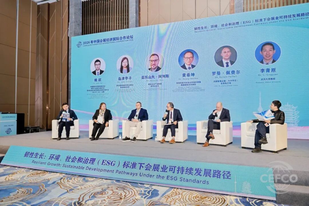 在圆桌环节,姚歆围绕会展业ESG相关核心问题,与多位嘉宾展开讨论。岛津準子认为,ESG落地的关键能力是将概念转化为日常运营行为,而非单纯传授知识。亚历山大·阿列斯表示,走向净零碳的首要步骤是制定路线图,这样能够明确现状、合作方向及价值链拓展路径,为可持续策略定调。黄希坤结合韩国经验表示,会展主办方是ESG推进核心,可串联各方利益相关者,且需会展中心等场地提供支持。罗曼·佩费尔提及,企业可持续发展面临多重挑战,客户的经济利益与预算考量是关键驱动因素,而碳足迹管理的核心是测算方法,基础的3R原则可落地实践。